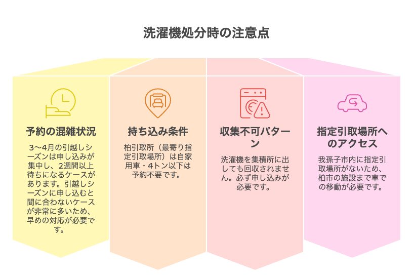 我孫子市では洗濯機の処分で以下の点に注意が必要です。