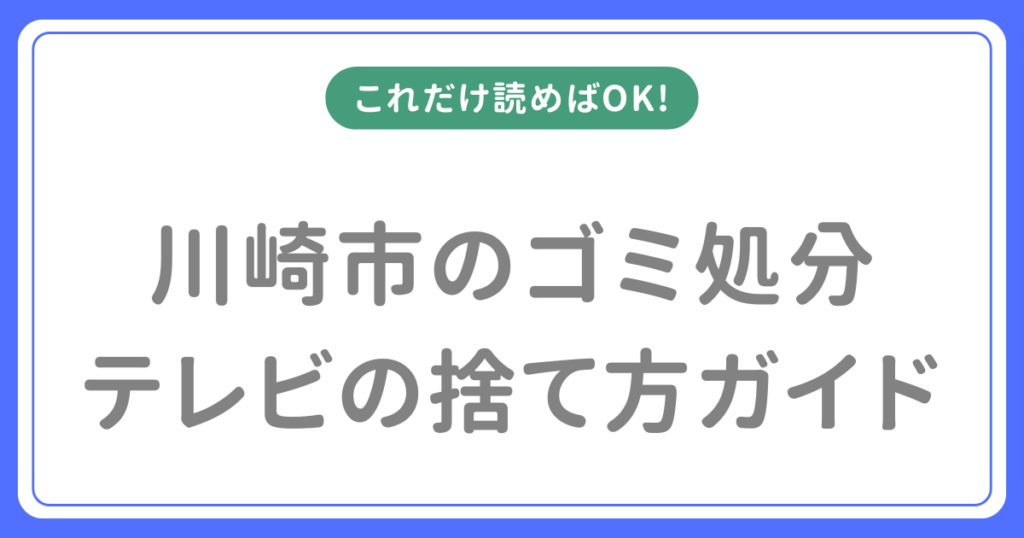 タイトル:川崎市でテレビを処分する方法【家電リサイクル法・料金・持ち込み先を解説】 「粗大ごみで申し込んだら断られた」――川崎市でテレビを処分しようとすると、最初の壁にぶつかる人が多くいます。テレビは粗大ごみでは捨てられません。家電リサイク... -
