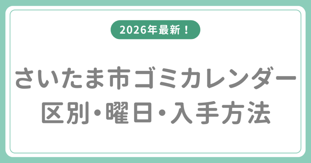 「さいたま市のごみの収集日はいつ?」「引越しで収集曜日がわからなくなった」「ごみカレンダーをスマホで確認したい」——そんな疑問を持つさいたま市民の方に向けて、このページでは2026年最新のごみ収集カレンダー情報を徹底解説します。 さいたま市は10... -