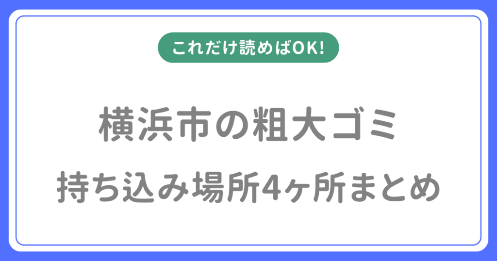 「横浜市で粗大ごみを自分で持ち込みたいけど、どこに持っていけばいいの?」「収集を待たずにすぐ処分したい」「4か所あるってどこが近い?」そんな疑問にお答えします。 通常の収集申込や品目ごとの料金は、横浜市の粗大ごみ完全ガイドでまとめて確認で... -