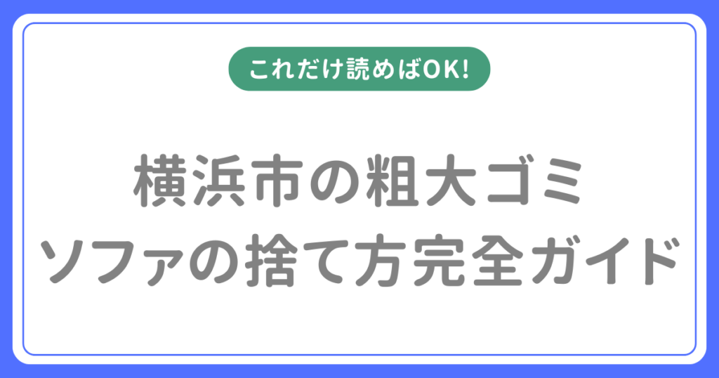 このページでは横浜市でソファーを処分する方法・料金・申し込み手順・注意点をすべて解説します。横浜市でソファーは粗大ごみとして500円〜1,000円で処分できますが、搬出を自分でする必要があるなど注意点があります。 急ぎでない場合は粗大ごみ(戸別収... -
