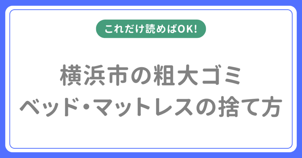 このページでは横浜市でベッド・マットレスを処分する方法・料金・申し込み手順・注意点をすべて解説します。横浜市ではベッドフレーム・マットレスは粗大ごみとして500円〜2,200円で処分できますが、スプリングの有無やサイズによって料金が異なります。... -