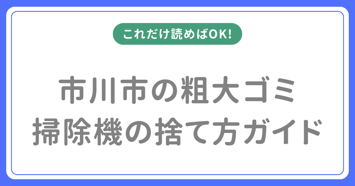 市川市で掃除機を処分するには、大型ごみ(事前申込)・クリーンセンター持ち込み・民間業者の3つの方法があります。コード式・コードレス・ロボット掃除機など種類を問わず大型ごみとして処分できます。本記事では処分の手順・料金・注意点を解説します。
