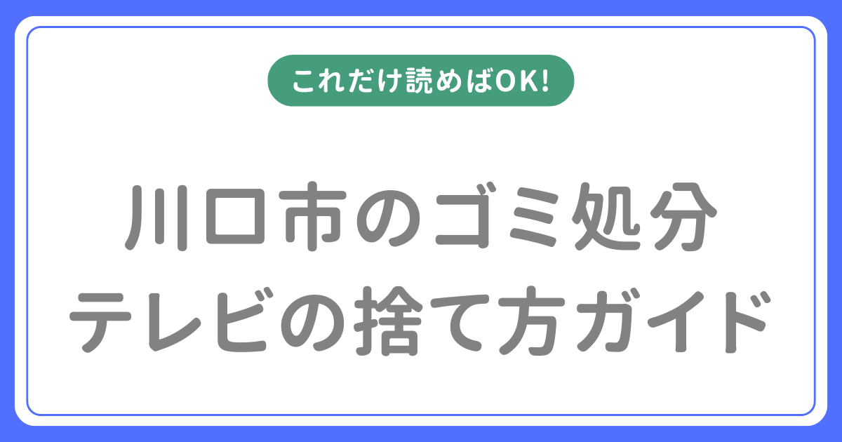 テレビは家電リサイクル法の対象品目のため、粗大ごみとして捨てることは法律で禁止されています。この記事を読めば、川口市でテレビを最安・最速で処分する方法がすべてわかります。