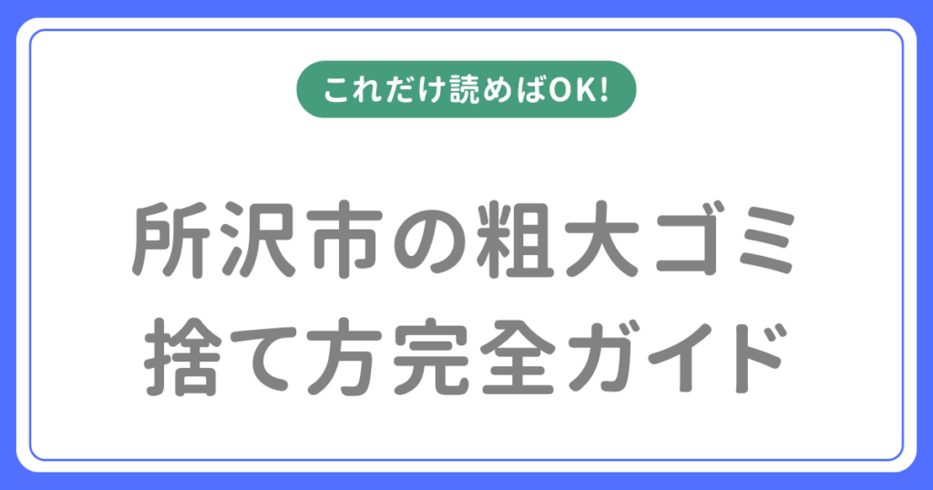 「所沢市で粗大ゴミを捨てたいけど、どうすればいい?」「料金はいくら?」「ネットで申し込めるの?」「マンションでも出せる?」「直接持ち込みできる?」 そんな疑問をすべて解決するために、所沢市公式ホームページの最新情報をもとに、スマホでもサッ...