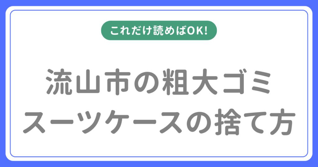 使わなくなったスーツケースの処分方法がわからない。燃えないごみで出せるのか、それとも粗大ごみになるのか。そう悩んでいる方は多いです。 流山市では、スーツケースは粗大ごみ指定品目として1点1,100円で処分できます。小型のもの(一辺30cm未満)であ... -