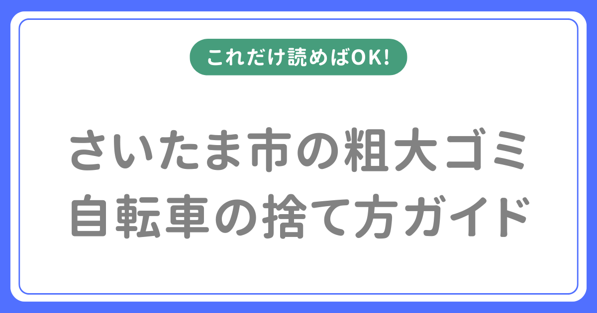 さいたま市で自転車を粗大ゴミで処分しようと思ったとき、「粗大ごみに出せばいいの?」「防犯登録の抹消ってどうやればいい?」と疑問に思う方も多いでしょう。 自転車の処分は単に粗大ごみに出すだけではなく、事前に防犯登録の抹消手続きが必要です。また、電動自転車にはバッテリーの取り外しも求められます。 この記事では2026年最新の情報をもとに、さいたま市での自転車の正しい捨て方を徹底的に解説します。