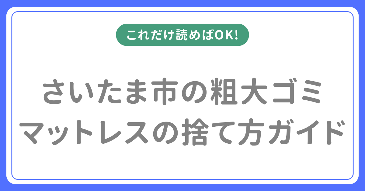 マットレス以外の大型粗大ごみ(家具・家電など)の処分方法については、さいたま市粗大ごみ完全ガイドで詳しく解説しています。申し込み方法・料金・納付券の購入方法などをまとめていますので、ぜひあわせてご覧ください。