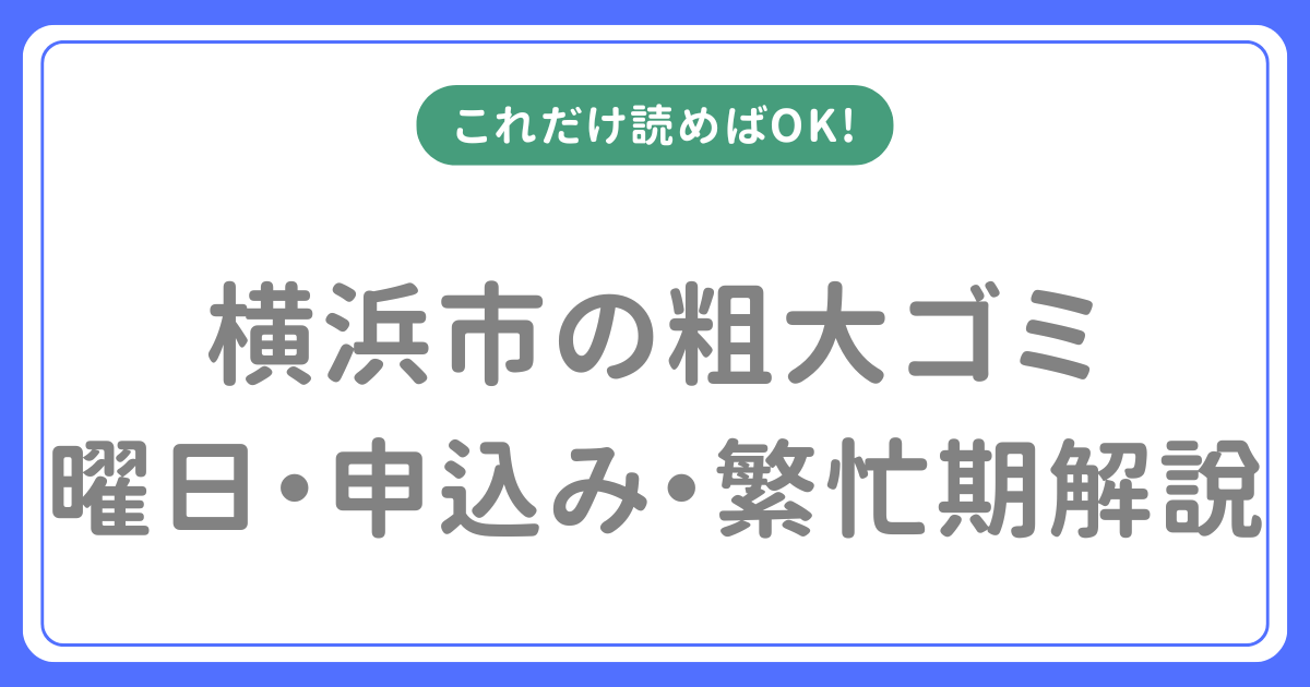 横浜市の粗大ごみの申込み方法・料金・品目一覧など基本的な情報は、横浜市の粗大ごみ完全ガイドにまとめています。あわせてご覧ください。